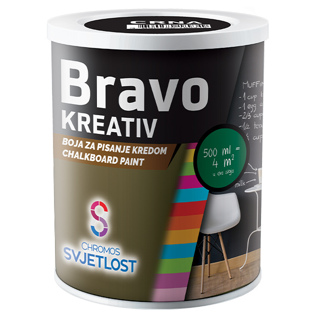 Visokokvalitetna boja za unutarnje zidove na bazi disperzije polimera u vodi, posebno otporna na habanje, koja stvara čvrst i elastičan film. Nakon sušenja prikladna je za pisanje kredom. Obojene površine su posebno otporne na habanje te se mogu prati mekom, vlažnom krpicom. Može se kombinirati u sustavu s temeljnom magnetnom bojom Bravo magnetic, čime se postižu magnetska svojstva i perivost završnog suhog filma.